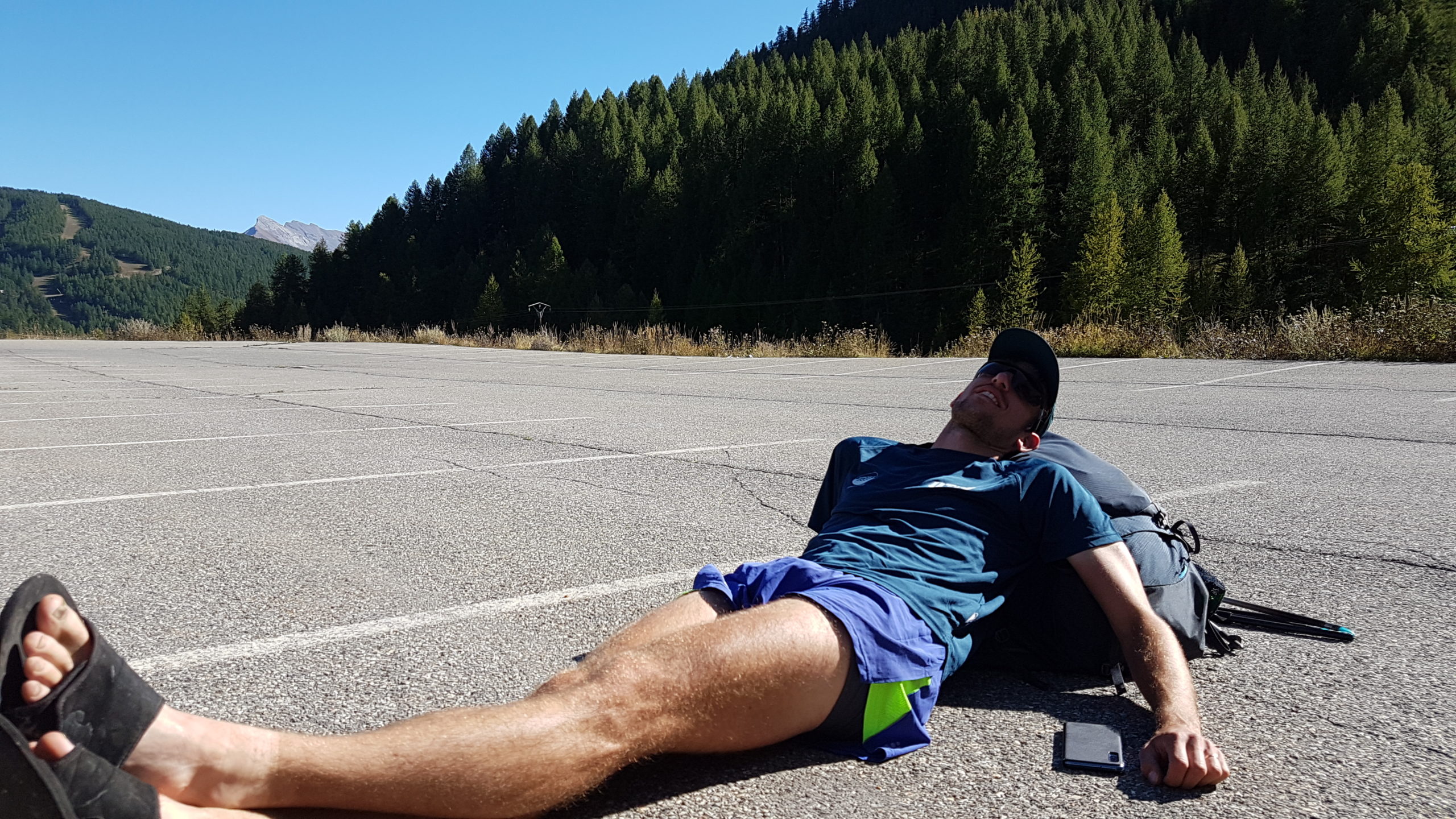 Il est 16h. On est parti il y a 35 heures. On a marché à travers la montagne sur 118km et 7650m de dénivelé avec des sacs de 10km sur le dos, au moins.