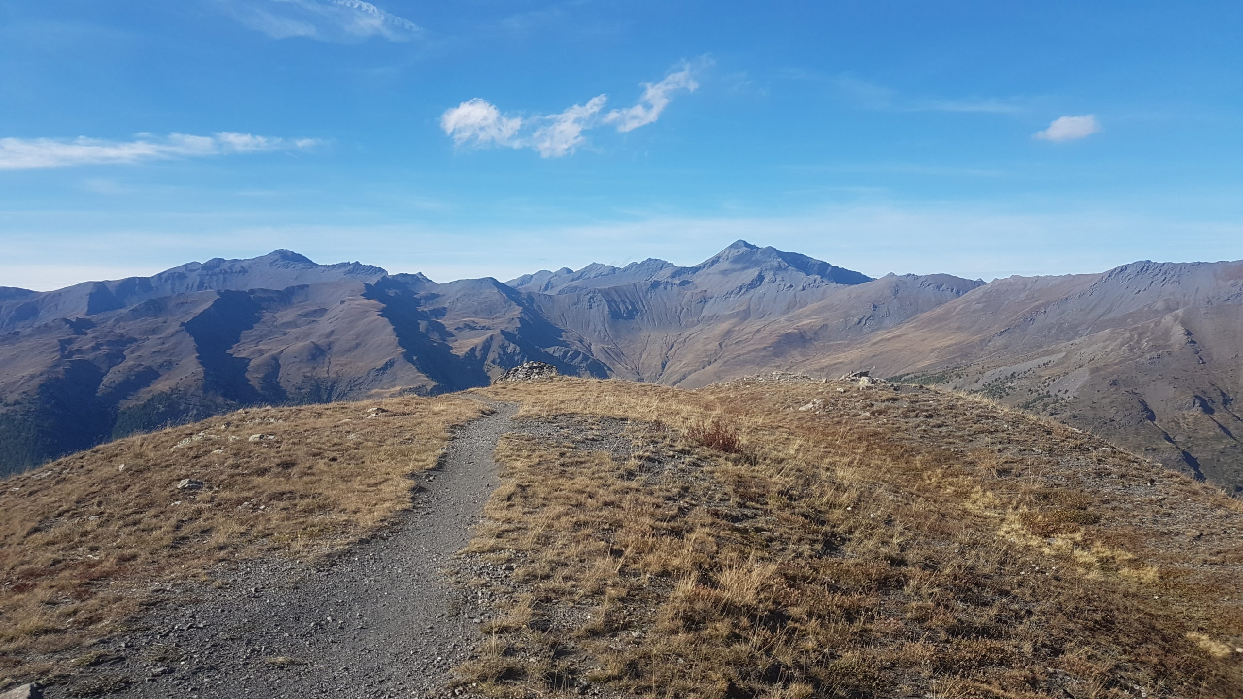 De chez Colette, on rejoint les Crêtes de Peyra Plata (2584m). C’est le moment d’avoir une très belle vue sur le Mont Viso (3841m) ! Et surtout de se prendre des rafales de vent de l’espace à nous faire tanguer !